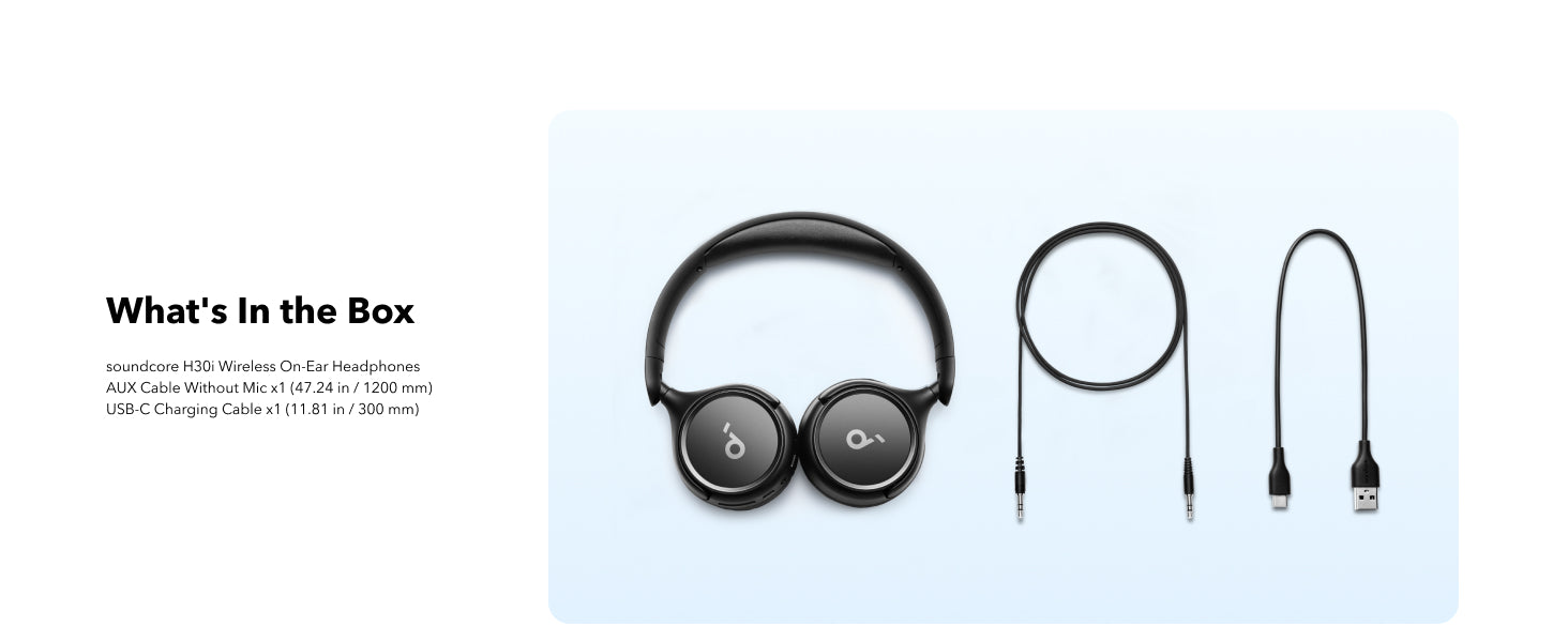 soundcore H30i wireless on-ear headphones are ideal for those longer listening sessions at only 183g. Crafted with soft earcups and an ergonomic shape, ear fatigue is a thing of the past. -